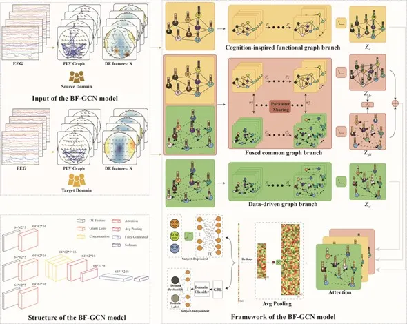 Recently, in view of the cognitive interpretability problem existing in the application of deep-learning strategies in emotional electroencephalogram (EEG) recognition, the Brain - Machine Interaction Research Team in the School of Life Science and Technology, University of Electronic Science and Technology of China, takes the emotional EEG network as a kind of cognitive prior graph information for characterizing the individual emotional process. Through a strategy that combines cognitive inspiration and data-driven approaches, it learns the latent graph features of emotional EEG signals and thus proposes a Brain network initial inspiration and Fused attention mechanism (BF-GCN) based on brain cognitive mechanism.