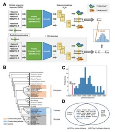 Building upon this, the team developed the ACEP pipeline: (1) Calculating true embedding distances of homologous proteins, (2) Constructing background distributions via simulated neutral evolution, (3) Performing statistical tests to identify significant high-order convergence signals.