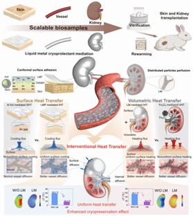 A research team from the Technical Institute of Physics and Chemistry, Chinese Academy of Sciences (TIPC, CAS) has proposed a preservation method based on a liquid metal cryoprotectant. This cryoprotectant can be injected, perfused through vascular networks, or applied to tissue surfaces. It reduces the interfacial and contact thermal resistance of tissues and organs, increases the rewarming rate, and reduces thermal stress by two orders of magnitude.