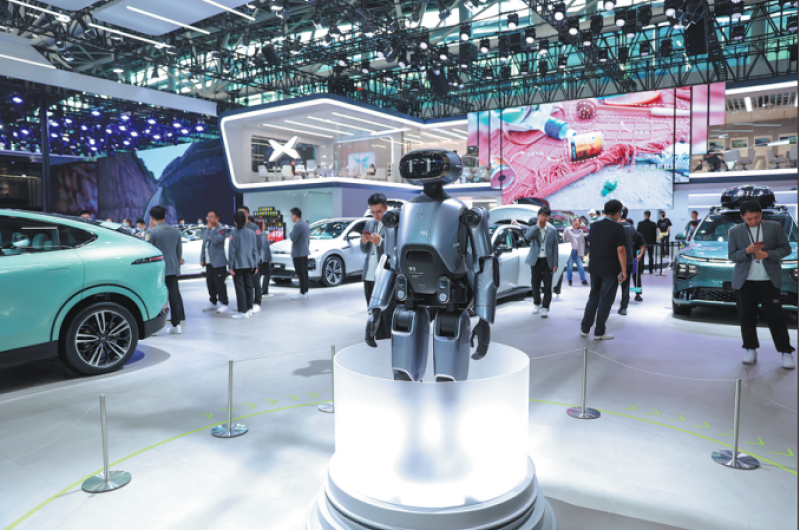 Xpeng's robot on display during an expo in Guangzhou, Guangdong province. (Photo provided to China Daily)