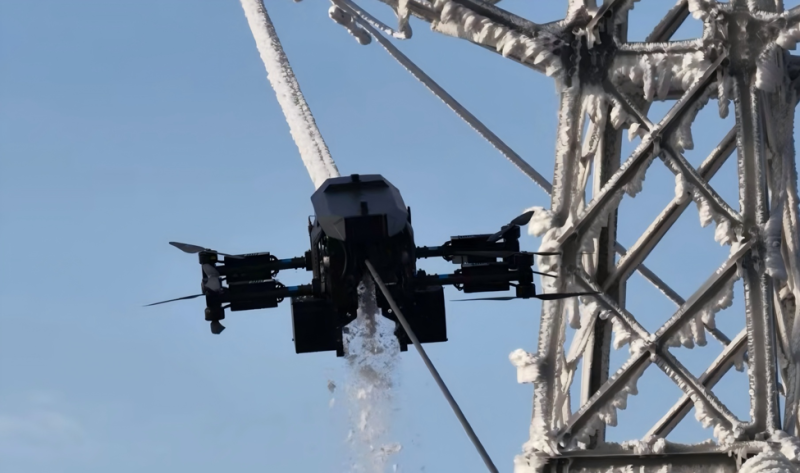 A domestically-made robot capable of flying to power lines and removing ice was put to work recently in Cili county, Zhangjiajie, China's Hunan province, offering a new solution for safeguarding power grids during extreme winter weather.
