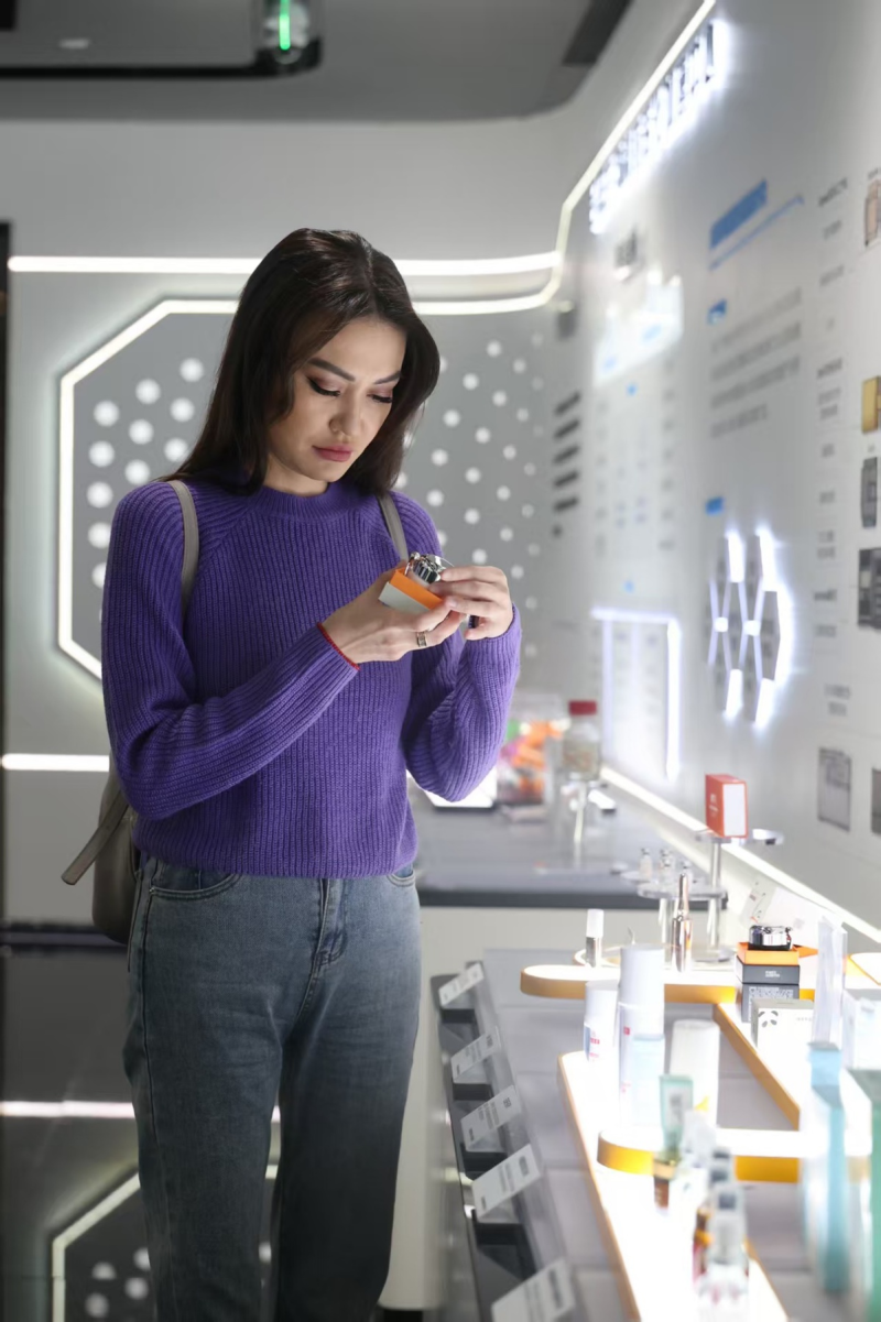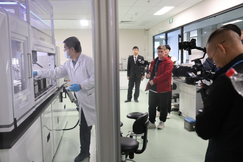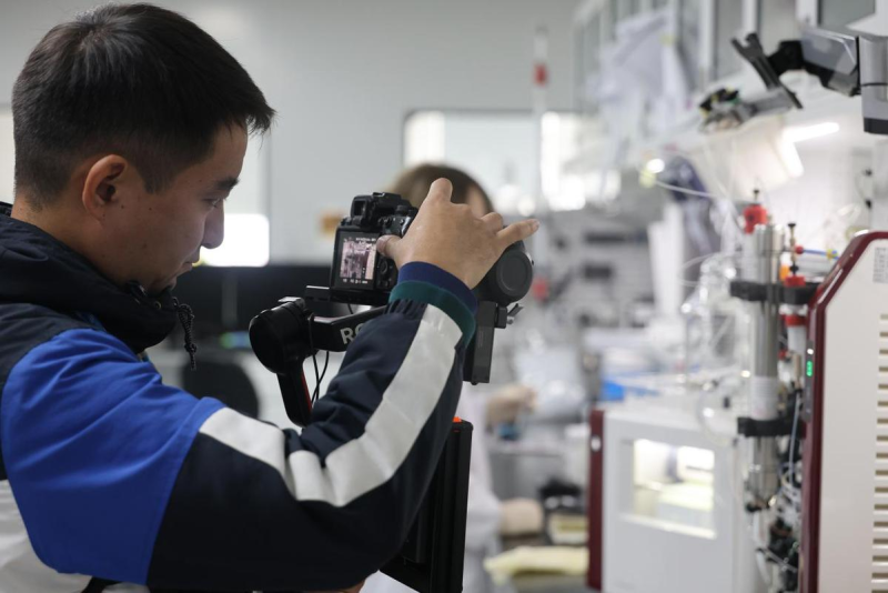 A member of the filming crew explores the Chang Development Synthetic Biology Manufacturing Acceleration Center.(chinadaily.com.cn)